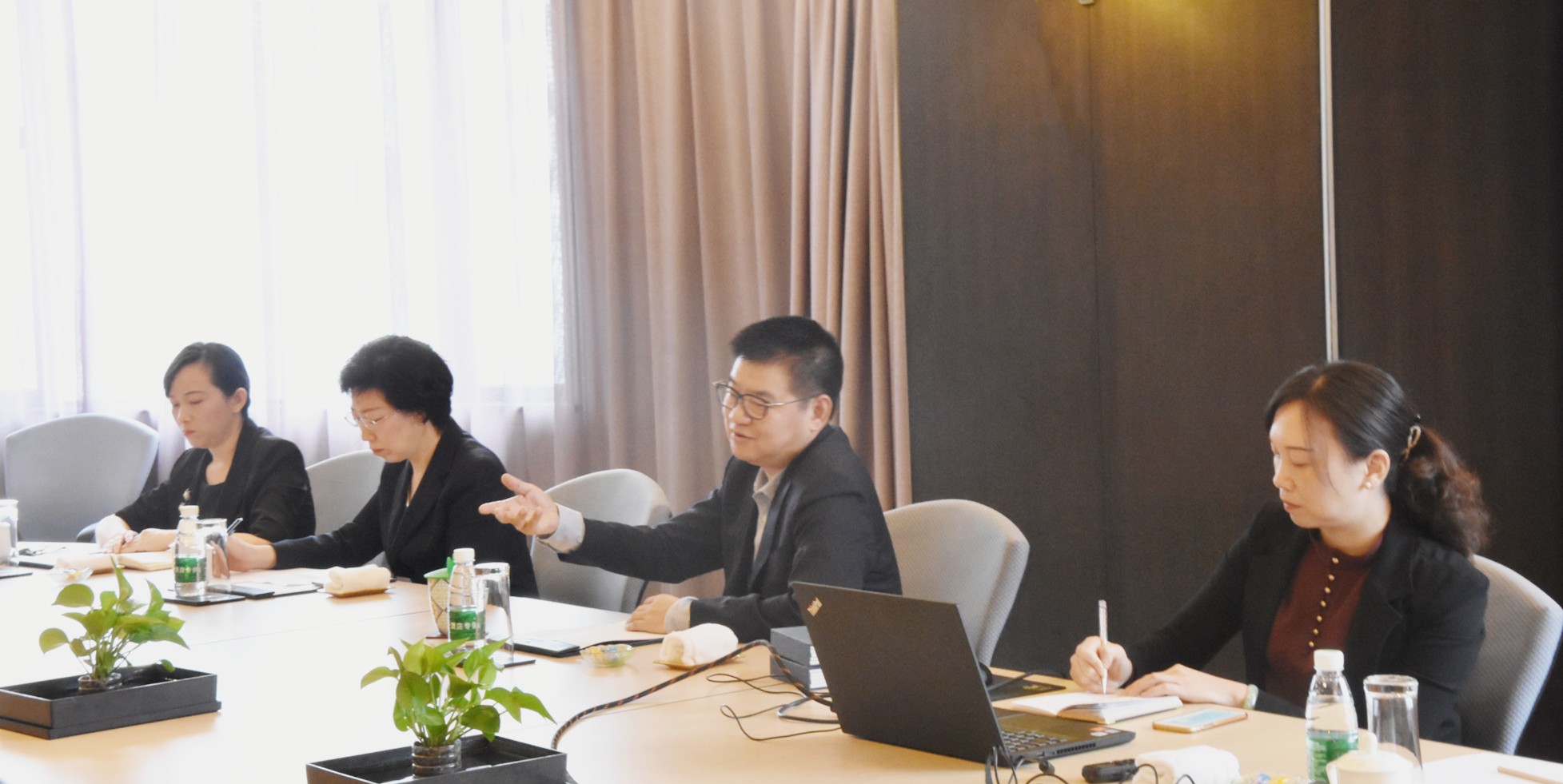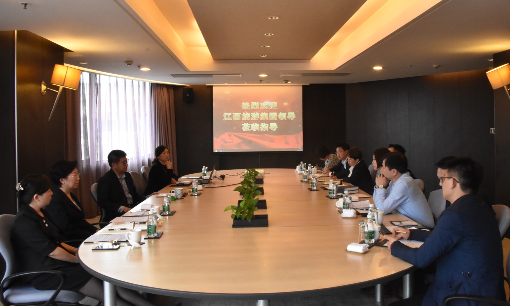 会上,严董事长向江旅集团赠送了我集团的全套管理制度汇编。集团副总经理张鲁桂、钱伊蕾、陈静参会,与江西沁庐酒店资产管理集团副总经理陈黎、总会计师帅淑敏等,就具体业务进行交流。