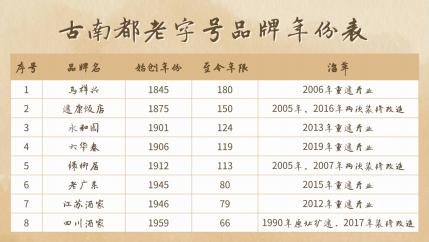 第二,老字号常与文化人有千丝万缕的关系。富春的文化展充分说明了这一点,冰心、朱自清、梅兰芳等均在此留下足迹,题字、墨宝等文化记忆更多。于右任曾为马祥兴留下“百壶美酒人三醉,一塔秋灯映六朝”至今仍悬挂在门前,店名牌匾也是由其女婿屈武书写。朱自清的《桨声灯影里的秦淮河》是大家熟知的,这是朱自清与俞平伯在永和园,品尝了烧饼和干丝后写下的同名异文。永和园说起来与富春有很多共通点,原先也是茶社,后来在茶舍里摆了维扬细点的柜台,逐步成为南京名店。“在茶店里(指永和园)吃了一盘豆腐干丝,两个烧饼之后,以歪歪的脚步趸上夫子庙前停泊着的画舫,就懒洋洋躺到藤椅上去了。好郁蒸的江南,傍晚也还是热的。”--这是俞平伯的感慨,而朱自清《扬州的夏日》也有相似的描述。很多老字号的名菜,也是因名人而起。马祥兴的“胡先生豆腐”,是两位南大教授胡小石和胡翔冬,给了厨师指点,并且由他们吃出了名气 , 最后命名为胡小石豆腐。胡适酷爱徽菜 ,“一品锅”因此出名。张大千对烧烤情有独钟 , 北京清真烧烤因此扬名。这正如岳阳楼因范仲淹而闻名 ,范仲淹也因《岳阳楼记》而永恒 。文化人与老字号相得益彰 ,相互成就。第三,老字号文化现象还表现在丰富的历史内涵上。历史的变迁,战火的洗礼,见证着已经上演了和正在上演的一幕幕历史。江苏酒家始创于1946年,当时国民政府还都南京后,弹冠相庆,五子登科,餐饮需求大增。南京六华春菜馆和老万全酒家的几个炉、案、碟、点的大厨,合计凑钱创业。在夫子庙旁的状元境租了一栋小楼,这就是后来的江苏酒家。江苏酒家的名称变迁,恰如时代的沧海桑田。最初叫“义记复兴菜馆”,义记是说大家合伙创业,复兴是指抗日胜利;后来应该是股权集中于邵氏,又名为“邵复兴”;六七十年代,文革期间改名为“遵义饭店”,纪念遵义会议;再后来,叫过“勤俭饮食中心店”,响应的是时代号召;改革开放后,由于其规模较大,办起了烹饪技术培训班,为全国培训厨师人才,并多次代表江苏省参加比赛,承担外宾接待任务,美国老布什曾来此就餐,故最终定名“江苏酒家”。我们回顾名店的名称演变,仅仅是一个侧面,就能看到一段段历史的内涵。今天时间关系就不一一说明了。现场PPT展示《古南都老字号品牌年份表》: